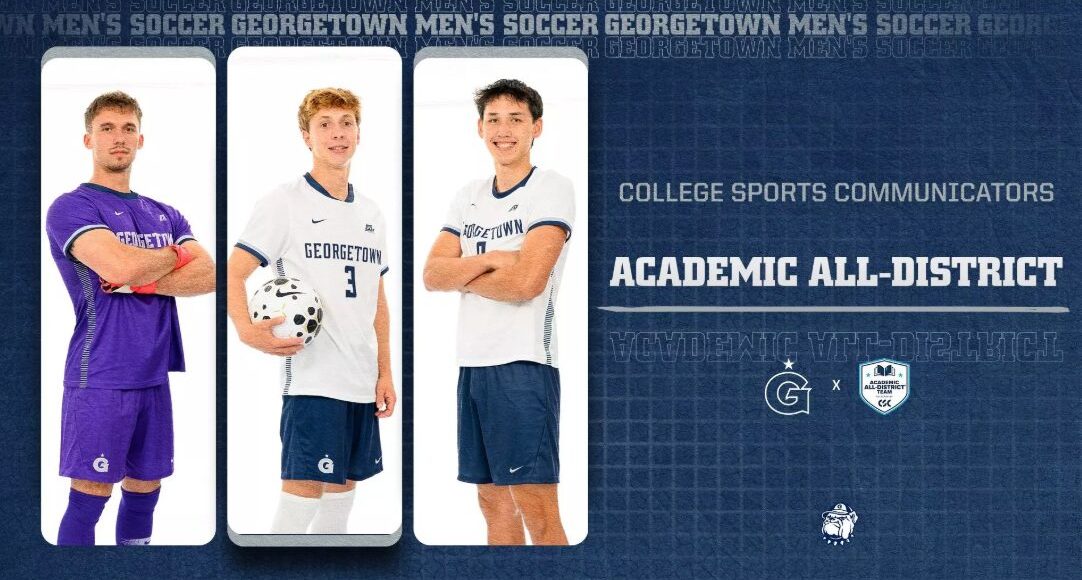 WASHINGTON — Three members of the Georgetown University men’s soccer program have been selected to the College Sports Communicators (CSC) Academic All-District Team, the organization announced this week. Senior goalkeeper Tenzing Manske, junior defender Eric Howard, and sophomore forward Mitchell Baker all earned the honor.